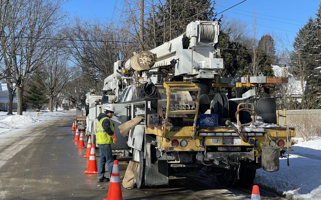 Freezing temperatures didn’t stop DTE crews from improving electrical reliability for customers who live along the city border of Bloomfield Hills and Birmingham. A new utility pole was installed off Quarton Road near Endicott Lake. This new pole, outfitted with new crossarms and equipment, will provide improved electrical reliability in this neighborhood for years to come.