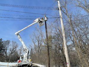 DTE crews installed a new transformer and utility pole last week in a Bloomfield Hills neighborhood. The new pole was also equipped with an underground line that will enable the pole to power overhead and underground systems. The work was done on Porters Lane off of Club Street and will improve service on this street for years to come.