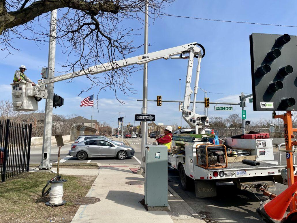Contractors, electricians and cable splicers worked together in Detroit, on John C Lodge Service Road and West Forest Avenue, to transfer a traffic signal’s power source from Public Lighting Department (PLD) to DTE Energy. With this switch, DTE has installed upgraded underground and overhead equipment to improve reliability. In addition, this update allows DTE to more quickly locate and repair any electrical issues in the future.