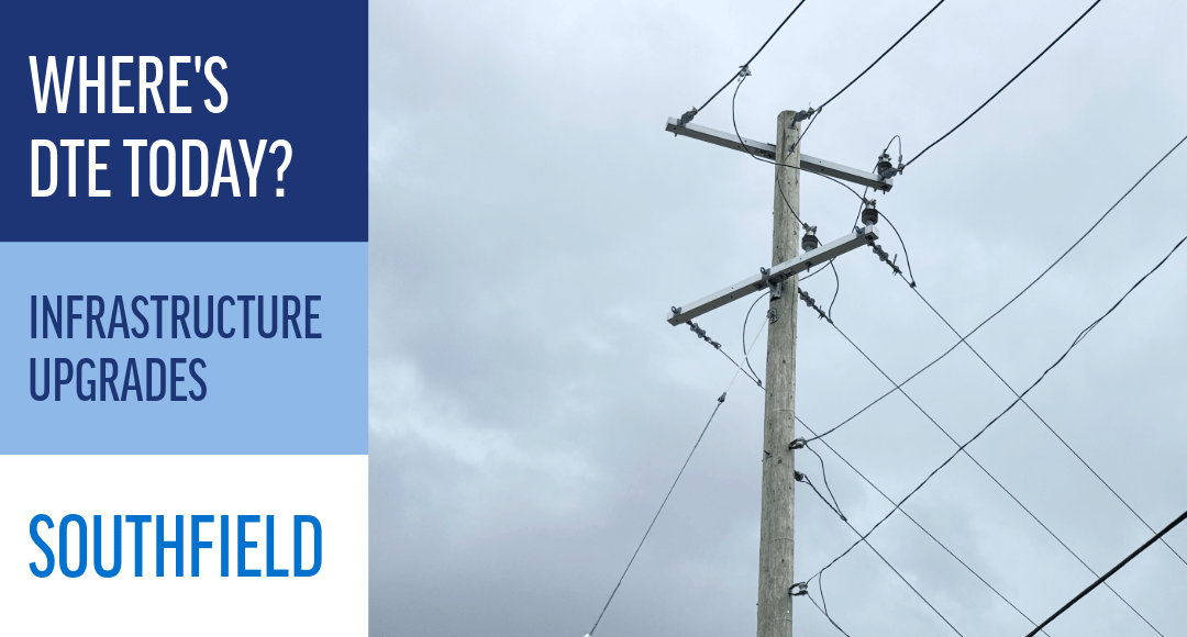 This week, DTE was at the corner of Lincoln Drive and Greenfield Road in Southfield installing new pole top equipment. This new infrastructure could include new power poles, connectors, fiberglass cross arms or a new transformer. New power poles are taller and more durable than older poles to better withstand against extreme weather. The new poles, along with new pole top equipment will help improve reliability for area residents, especially during severe weather events.